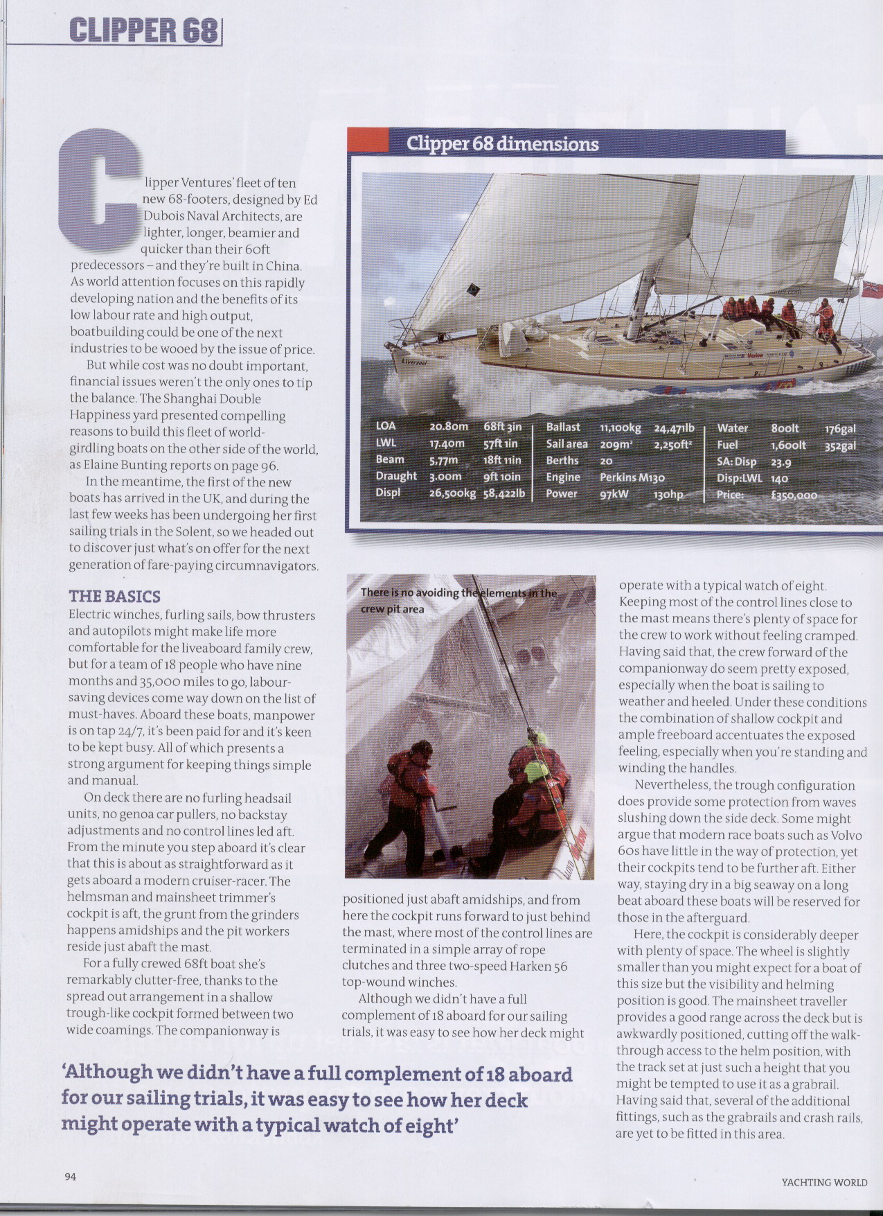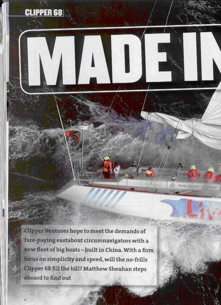 A new Clipper 68’ fleet has been built at Shanghai Double Happiness Yacht Co., Ltd for Clipper 05-06 Round World Race, designed by the well-known UK Dubois naval architects. Modern lightweight FRP construction with inner core and vacuum bagging technology has been used to produce the best quality yachts.