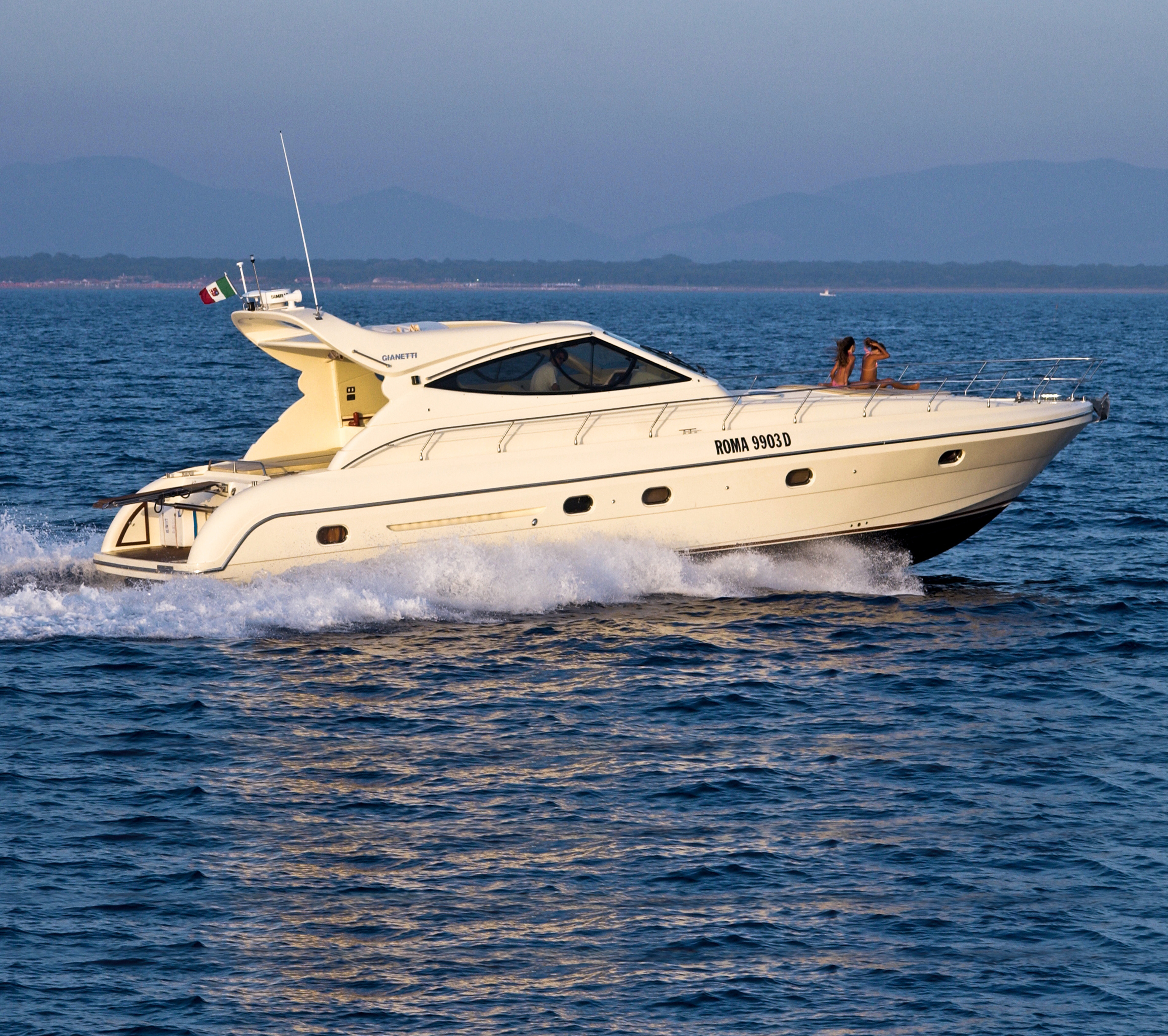 Welcome on board the Gianetti 48 Sport, a real masterpiece of stylistic concepts and advanced technologies, which put this boat on top of the Sport cruisers category. The Gianetti 48 Sport has very nice, smooth and aggressive looks, and is very sporty thanks to a low profile hull with a deep “V” which gives a very high comfort level even at high speed in heavy seas.